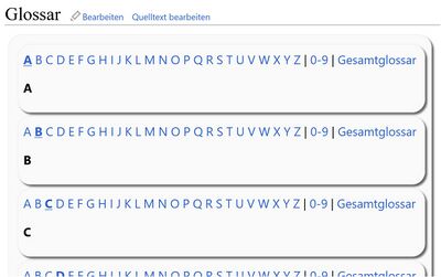 === Unsere Glossare | === Unsere neues Design für die Glossare und die Gesamtglossare === | ||